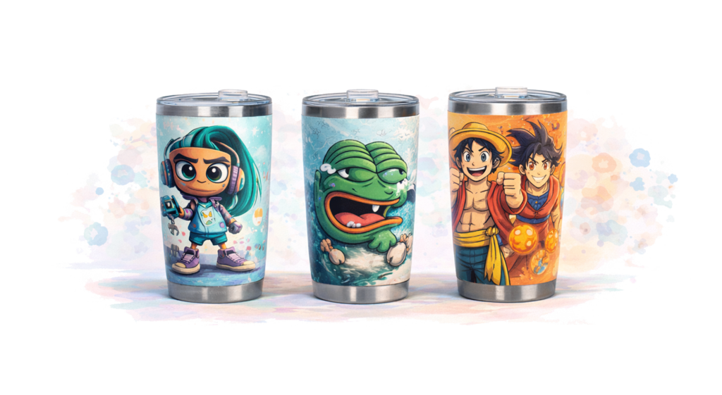 Ropa, tazas, termos y botellas inspirados en videojuegos, música y tendencias.